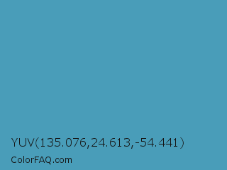 YUV 135.076,24.613,-54.441 Color is a normal blue color and the nearest color is Hippie Blue #589aaf. Hex code #499db9 and RGB value is rgb(73,157,185). In RGB color space, this color is composed of 29% red, 62% green, 73% blue, In CMYK color space, this color is composed of 61% cyan, 15% magenta, 0% yellow , 27% black , In HSL color space, this color has a hue angle of 195° , 44% saturation and 51% lightness.