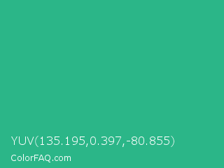YUV 135.195,0.397,-80.855 Color is a normal green color and the nearest color is Mountain Meadow #30ba8f. Hex code #2bb688 and RGB value is rgb(43,182,136). In RGB color space, this color is composed of 17% red, 71% green, 53% blue, In CMYK color space, this color is composed of 76% cyan, 0% magenta, 25% yellow , 29% black , In HSL color space, this color has a hue angle of 160° , 62% saturation and 44% lightness.