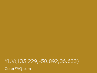 YUV 135.229,-50.892,36.633 Color is a normal orange color and the nearest color is University Of California Gold #b78727. Hex code #b18620 and RGB value is rgb(177,134,32). In RGB color space, this color is composed of 69% red, 53% green, 13% blue, In CMYK color space, this color is composed of 0% cyan, 24% magenta, 82% yellow , 31% black , In HSL color space, this color has a hue angle of 42° , 69% saturation and 41% lightness.