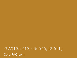 YUV 135.413,-46.546,42.611 Color is a normal orange color and the nearest color is University Of California Gold #b78727. Hex code #b88129 and RGB value is rgb(184,129,41). In RGB color space, this color is composed of 72% red, 51% green, 16% blue, In CMYK color space, this color is composed of 0% cyan, 30% magenta, 78% yellow , 28% black , In HSL color space, this color has a hue angle of 37° , 64% saturation and 44% lightness.
