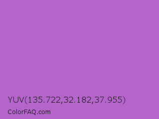 YUV 135.722,32.182,37.955 Color is a normal purple color and the nearest color is Rich Lilac #b666d2. Hex code #b365c9 and RGB value is rgb(179,101,201). In RGB color space, this color is composed of 70% red, 40% green, 79% blue, In CMYK color space, this color is composed of 11% cyan, 50% magenta, 0% yellow , 21% black , In HSL color space, this color has a hue angle of 287° , 48% saturation and 59% lightness.