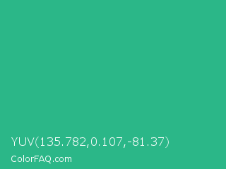 YUV 135.782,0.107,-81.37 Color is a normal green color and the nearest color is Mountain Meadow #30ba8f. Hex code #2bb788 and RGB value is rgb(43,183,136). In RGB color space, this color is composed of 17% red, 72% green, 53% blue, In CMYK color space, this color is composed of 77% cyan, 0% magenta, 26% yellow , 28% black , In HSL color space, this color has a hue angle of 160° , 62% saturation and 44% lightness.