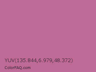 YUV 135.844,6.979,48.372 Color is a normal rose color and the nearest color is Pearly Purple #b768a2. Hex code #bf6996 and RGB value is rgb(191,105,150). In RGB color space, this color is composed of 75% red, 41% green, 59% blue, In CMYK color space, this color is composed of 0% cyan, 45% magenta, 21% yellow , 25% black , In HSL color space, this color has a hue angle of 329° , 40% saturation and 58% lightness.
