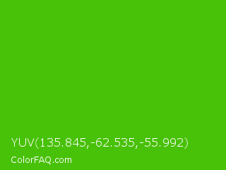 YUV 135.845,-62.535,-55.992 Color is a normal green color and the nearest color is Kelly Green #4cbb17. Hex code #48c109 and RGB value is rgb(72,193,9). In RGB color space, this color is composed of 28% red, 76% green, 4% blue, In CMYK color space, this color is composed of 63% cyan, 0% magenta, 95% yellow , 24% black , In HSL color space, this color has a hue angle of 99° , 91% saturation and 40% lightness.