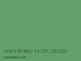 YUV 135.893,-14.737,-33.232 Color is a normal green color and the nearest color is Aqua Forest #5fa777. Hex code #62a16a and RGB value is rgb(98,161,106). In RGB color space, this color is composed of 38% red, 63% green, 42% blue, In CMYK color space, this color is composed of 39% cyan, 0% magenta, 34% yellow , 37% black , In HSL color space, this color has a hue angle of 128° , 25% saturation and 51% lightness.