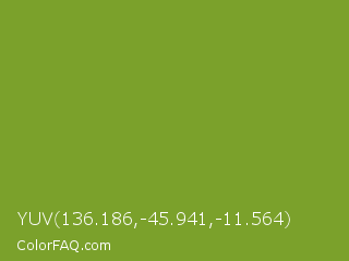 YUV 136.186,-45.941,-11.564 Color is a normal lime color and the nearest color is Sushi #87ab39. Hex code #7ba12b and RGB value is rgb(123,161,43). In RGB color space, this color is composed of 48% red, 63% green, 17% blue, In CMYK color space, this color is composed of 24% cyan, 0% magenta, 73% yellow , 37% black , In HSL color space, this color has a hue angle of 79° , 58% saturation and 40% lightness.