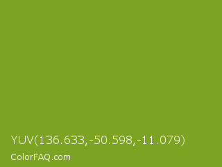 YUV 136.633,-50.598,-11.079 Color is a normal lime color and the nearest color is Wasabi #788a25. Hex code #7ca322 and RGB value is rgb(124,163,34). In RGB color space, this color is composed of 49% red, 64% green, 13% blue, In CMYK color space, this color is composed of 24% cyan, 0% magenta, 79% yellow , 36% black , In HSL color space, this color has a hue angle of 78° , 65% saturation and 39% lightness.