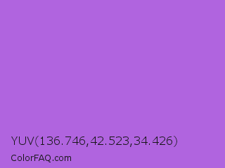 YUV 136.746,42.523,34.426 Color is a light purple color and the nearest color is Rich Lilac #b666d2. Hex code #b064df and RGB value is rgb(176,100,223). In RGB color space, this color is composed of 69% red, 39% green, 87% blue, In CMYK color space, this color is composed of 21% cyan, 55% magenta, 0% yellow , 13% black , In HSL color space, this color has a hue angle of 277° , 66% saturation and 63% lightness.