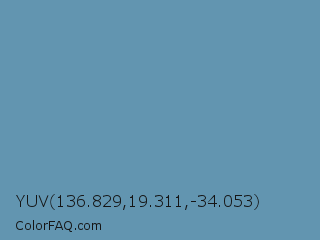 YUV 136.829,19.311,-34.053 Color is a normal blue color and the nearest color is Hippie Blue #589aaf. Hex code #6295b0 and RGB value is rgb(98,149,176). In RGB color space, this color is composed of 38% red, 58% green, 69% blue, In CMYK color space, this color is composed of 44% cyan, 15% magenta, 0% yellow , 31% black , In HSL color space, this color has a hue angle of 201° , 33% saturation and 54% lightness.