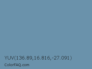 YUV 136.89,16.816,-27.091 Color is a normal blue color and the nearest color is Gothic #6d92a1. Hex code #6a92ab and RGB value is rgb(106,146,171). In RGB color space, this color is composed of 42% red, 57% green, 67% blue, In CMYK color space, this color is composed of 38% cyan, 15% magenta, 0% yellow , 33% black , In HSL color space, this color has a hue angle of 203° , 28% saturation and 54% lightness.