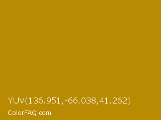 YUV 136.951,-66.038,41.262 Color is a normal orange color and the nearest color is Dark Goldenrod #b8860b. Hex code #b88b03 and RGB value is rgb(184,139,3). In RGB color space, this color is composed of 72% red, 55% green, 1% blue, In CMYK color space, this color is composed of 0% cyan, 24% magenta, 98% yellow , 28% black , In HSL color space, this color has a hue angle of 45° , 97% saturation and 37% lightness.