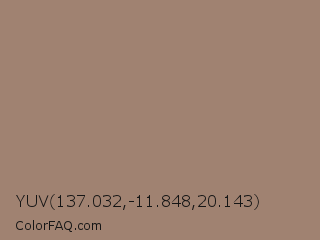 YUV 137.032,-11.848,20.143 Color is a normal orange color and the nearest color is Beaver #9f8170. Hex code #a08271 and RGB value is rgb(160,130,113). In RGB color space, this color is composed of 63% red, 51% green, 44% blue, In CMYK color space, this color is composed of 0% cyan, 19% magenta, 29% yellow , 37% black , In HSL color space, this color has a hue angle of 22° , 20% saturation and 54% lightness.