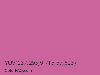 YUV 137.295,9.715,57.623 Color is a normal magenta color and the nearest color is Hopbush #d06da1. Hex code #cb649d and RGB value is rgb(203,100,157). In RGB color space, this color is composed of 80% red, 39% green, 62% blue, In CMYK color space, this color is composed of 0% cyan, 51% magenta, 23% yellow , 20% black , In HSL color space, this color has a hue angle of 327° , 50% saturation and 59% lightness.