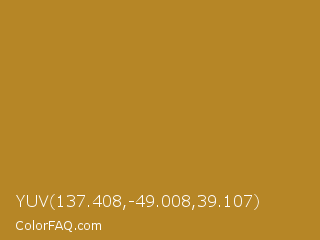 YUV 137.408,-49.008,39.107 Color is a normal orange color and the nearest color is University Of California Gold #b78727. Hex code #b68626 and RGB value is rgb(182,134,38). In RGB color space, this color is composed of 71% red, 53% green, 15% blue, In CMYK color space, this color is composed of 0% cyan, 26% magenta, 79% yellow , 29% black , In HSL color space, this color has a hue angle of 40° , 65% saturation and 43% lightness.