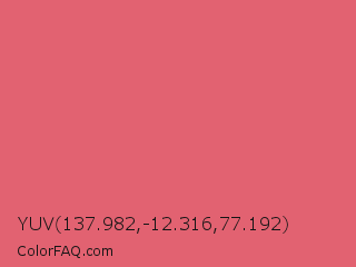 YUV 137.982,-12.316,77.192 Color is a light red color and the nearest color is Light Carmine Pink #e66771. Hex code #e26271 and RGB value is rgb(226,98,113). In RGB color space, this color is composed of 89% red, 38% green, 44% blue, In CMYK color space, this color is composed of 0% cyan, 57% magenta, 50% yellow , 11% black , In HSL color space, this color has a hue angle of 353° , 69% saturation and 64% lightness.