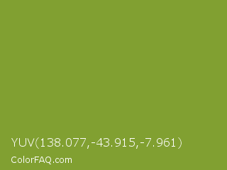 YUV 138.077,-43.915,-7.961 Color is a normal lime color and the nearest color is Sushi #87ab39. Hex code #81a031 and RGB value is rgb(129,160,49). In RGB color space, this color is composed of 51% red, 63% green, 19% blue, In CMYK color space, this color is composed of 19% cyan, 0% magenta, 69% yellow , 37% black , In HSL color space, this color has a hue angle of 77° , 53% saturation and 41% lightness.