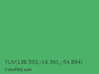 YUV 138.593,-16.561,-54.894 Color is a normal green color and the nearest color is Chateau Green #40a860. Hex code #4cb169 and RGB value is rgb(76,177,105). In RGB color space, this color is composed of 30% red, 69% green, 41% blue, In CMYK color space, this color is composed of 57% cyan, 0% magenta, 41% yellow , 31% black , In HSL color space, this color has a hue angle of 137° , 40% saturation and 50% lightness.