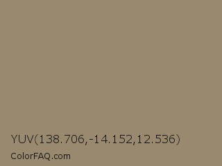 YUV 138.706,-14.152,12.536 Color is a normal orange color and the nearest color is Arrowtown #948771. Hex code #99896e and RGB value is rgb(153,137,110). In RGB color space, this color is composed of 60% red, 54% green, 43% blue, In CMYK color space, this color is composed of 0% cyan, 10% magenta, 28% yellow , 40% black , In HSL color space, this color has a hue angle of 38° , 17% saturation and 52% lightness.