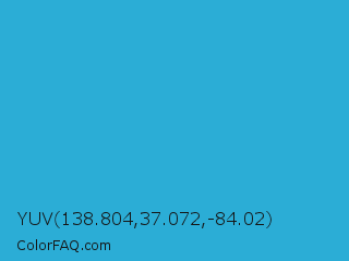 YUV 138.804,37.072,-84.02 Color is a normal blue color and the nearest color is Ball Blue #21abcd. Hex code #2badd6 and RGB value is rgb(43,173,214). In RGB color space, this color is composed of 17% red, 68% green, 84% blue, In CMYK color space, this color is composed of 80% cyan, 19% magenta, 0% yellow , 16% black , In HSL color space, this color has a hue angle of 194° , 68% saturation and 50% lightness.