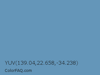 YUV 139.04,22.658,-34.238 Color is a normal blue color and the nearest color is Cerulean Frost #6d9bc3. Hex code #6496b9 and RGB value is rgb(100,150,185). In RGB color space, this color is composed of 39% red, 59% green, 73% blue, In CMYK color space, this color is composed of 46% cyan, 19% magenta, 0% yellow , 27% black , In HSL color space, this color has a hue angle of 205° , 38% saturation and 56% lightness.