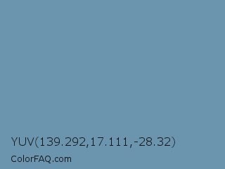 YUV 139.292,17.111,-28.32 Color is a normal blue color and the nearest color is Gothic #6d92a1. Hex code #6b95ae and RGB value is rgb(107,149,174). In RGB color space, this color is composed of 42% red, 58% green, 68% blue, In CMYK color space, this color is composed of 39% cyan, 14% magenta, 0% yellow , 32% black , In HSL color space, this color has a hue angle of 202° , 29% saturation and 55% lightness.