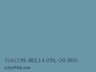 YUV 139.483,14.059,-29.365 Color is a normal blue color and the nearest color is Gothic #6d92a1. Hex code #6a97a8 and RGB value is rgb(106,151,168). In RGB color space, this color is composed of 42% red, 59% green, 66% blue, In CMYK color space, this color is composed of 37% cyan, 10% magenta, 0% yellow , 34% black , In HSL color space, this color has a hue angle of 196° , 26% saturation and 54% lightness.