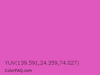 YUV 139.591,24.359,74.027 Color is a light magenta color and the nearest color is Fuchsia Pink #c154c1. Hex code #e057bd and RGB value is rgb(224,87,189). In RGB color space, this color is composed of 88% red, 34% green, 74% blue, In CMYK color space, this color is composed of 0% cyan, 61% magenta, 16% yellow , 12% black , In HSL color space, this color has a hue angle of 315° , 69% saturation and 61% lightness.