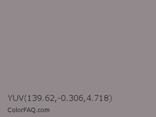 YUV 139.62,-0.306,4.718 Color is a normal red color and the nearest color is Venus #928590. Hex code #91898b and RGB value is rgb(145,137,139). In RGB color space, this color is composed of 57% red, 54% green, 55% blue, In CMYK color space, this color is composed of 0% cyan, 6% magenta, 4% yellow , 43% black , In HSL color space, this color has a hue angle of 345° , 4% saturation and 55% lightness.