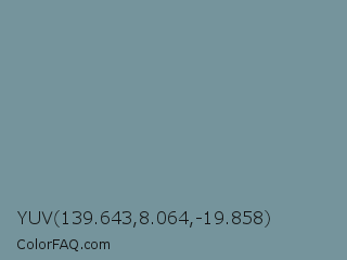 YUV 139.643,8.064,-19.858 Color is a normal cyan color and the nearest color is Gothic #6d92a1. Hex code #75949c and RGB value is rgb(117,148,156). In RGB color space, this color is composed of 46% red, 58% green, 61% blue, In CMYK color space, this color is composed of 25% cyan, 5% magenta, 0% yellow , 39% black , In HSL color space, this color has a hue angle of 192° , 16% saturation and 54% lightness.