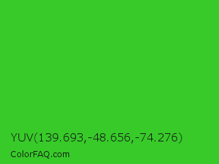YUV 139.693,-48.656,-74.276 Color is a normal green color and the nearest color is Lime Green #32cd32. Hex code #37ca29 and RGB value is rgb(55,202,41). In RGB color space, this color is composed of 22% red, 79% green, 16% blue, In CMYK color space, this color is composed of 73% cyan, 0% magenta, 80% yellow , 21% black , In HSL color space, this color has a hue angle of 115° , 66% saturation and 48% lightness.