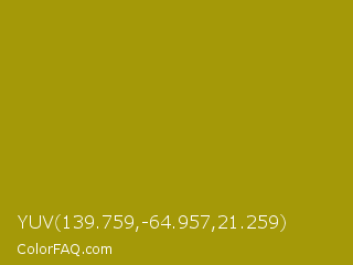 YUV 139.759,-64.957,21.259 Color is a normal yellow color and the nearest color is Dark Yellow #9b870c. Hex code #a49908 and RGB value is rgb(164,153,8). In RGB color space, this color is composed of 64% red, 60% green, 3% blue, In CMYK color space, this color is composed of 0% cyan, 7% magenta, 95% yellow , 36% black , In HSL color space, this color has a hue angle of 56° , 91% saturation and 34% lightness.