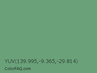 YUV 139.995,-9.365,-29.814 Color is a normal green color and the nearest color is Shiny Shamrock #5fa778. Hex code #6aa179 and RGB value is rgb(106,161,121). In RGB color space, this color is composed of 42% red, 63% green, 47% blue, In CMYK color space, this color is composed of 34% cyan, 0% magenta, 25% yellow , 37% black , In HSL color space, this color has a hue angle of 136° , 23% saturation and 52% lightness.