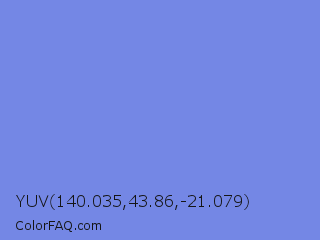YUV 140.035,43.86,-21.079 Color is a light blue color and the nearest color is Chetwode Blue #8581d9. Hex code #7487e5 and RGB value is rgb(116,135,229). In RGB color space, this color is composed of 45% red, 53% green, 90% blue, In CMYK color space, this color is composed of 49% cyan, 41% magenta, 0% yellow , 10% black , In HSL color space, this color has a hue angle of 230° , 68% saturation and 68% lightness.