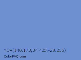 YUV 140.173,34.425,-28.216 Color is a light blue color and the nearest color is Danube #6093d1. Hex code #6c8fd2 and RGB value is rgb(108,143,210). In RGB color space, this color is composed of 42% red, 56% green, 82% blue, In CMYK color space, this color is composed of 49% cyan, 32% magenta, 0% yellow , 18% black , In HSL color space, this color has a hue angle of 219° , 53% saturation and 62% lightness.