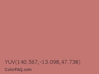 YUV 140.567,-13.098,47.738 Color is a light red color and the nearest color is Contessa #c6726b. Hex code #c37672 and RGB value is rgb(195,118,114). In RGB color space, this color is composed of 76% red, 46% green, 45% blue, In CMYK color space, this color is composed of 0% cyan, 39% magenta, 42% yellow , 24% black , In HSL color space, this color has a hue angle of 3° , 40% saturation and 61% lightness.