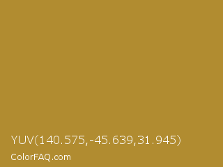 YUV 140.575,-45.639,31.945 Color is a normal orange color and the nearest color is Alpine #af8f2c. Hex code #b18c30 and RGB value is rgb(177,140,48). In RGB color space, this color is composed of 69% red, 55% green, 19% blue, In CMYK color space, this color is composed of 0% cyan, 21% magenta, 73% yellow , 31% black , In HSL color space, this color has a hue angle of 43° , 57% saturation and 44% lightness.