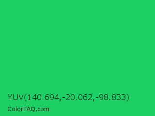 YUV 140.694,-20.062,-98.833 Color is a normal green color and the nearest color is Malachite #0bda51. Hex code #1cce64 and RGB value is rgb(28,206,100). In RGB color space, this color is composed of 11% red, 81% green, 39% blue, In CMYK color space, this color is composed of 86% cyan, 0% magenta, 51% yellow , 19% black , In HSL color space, this color has a hue angle of 144° , 76% saturation and 46% lightness.