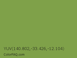 YUV 140.802,-33.426,-12.104 Color is a normal green color and the nearest color is Asparagus Green #7ba05b. Hex code #7fa149 and RGB value is rgb(127,161,73). In RGB color space, this color is composed of 50% red, 63% green, 29% blue, In CMYK color space, this color is composed of 21% cyan, 0% magenta, 55% yellow , 37% black , In HSL color space, this color has a hue angle of 83° , 38% saturation and 46% lightness.