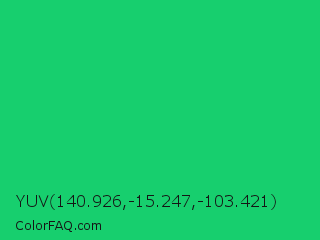 YUV 140.926,-15.247,-103.421 Color is a normal green color and the nearest color is Malachite #0bda51. Hex code #17cf6e and RGB value is rgb(23,207,110). In RGB color space, this color is composed of 9% red, 81% green, 43% blue, In CMYK color space, this color is composed of 89% cyan, 0% magenta, 47% yellow , 19% black , In HSL color space, this color has a hue angle of 148° , 80% saturation and 45% lightness.