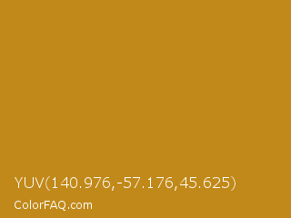 YUV 140.976,-57.176,45.625 Color is a normal orange color and the nearest color is Pizza #c99415. Hex code #c18919 and RGB value is rgb(193,137,25). In RGB color space, this color is composed of 76% red, 54% green, 10% blue, In CMYK color space, this color is composed of 0% cyan, 29% magenta, 87% yellow , 24% black , In HSL color space, this color has a hue angle of 40° , 77% saturation and 43% lightness.
