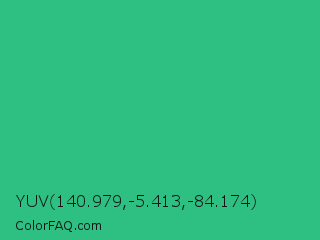 YUV 140.979,-5.413,-84.174 Color is a normal green color and the nearest color is Mountain Meadow #30ba8f. Hex code #2dc082 and RGB value is rgb(45,192,130). In RGB color space, this color is composed of 18% red, 75% green, 51% blue, In CMYK color space, this color is composed of 77% cyan, 0% magenta, 32% yellow , 25% black , In HSL color space, this color has a hue angle of 155° , 62% saturation and 46% lightness.