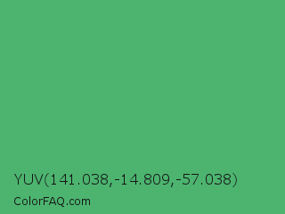 YUV 141.038,-14.809,-57.038 Color is a normal green color and the nearest color is Medium Sea Green #3cb371. Hex code #4cb46f and RGB value is rgb(76,180,111). In RGB color space, this color is composed of 30% red, 71% green, 44% blue, In CMYK color space, this color is composed of 58% cyan, 0% magenta, 38% yellow , 29% black , In HSL color space, this color has a hue angle of 140° , 41% saturation and 50% lightness.
