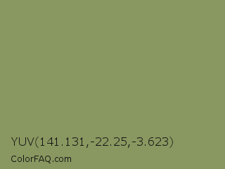 YUV 141.131,-22.25,-3.623 Color is a normal lime color and the nearest color is Moss Green #8a9a5b. Hex code #899860 and RGB value is rgb(137,152,96). In RGB color space, this color is composed of 54% red, 60% green, 38% blue, In CMYK color space, this color is composed of 10% cyan, 0% magenta, 37% yellow , 40% black , In HSL color space, this color has a hue angle of 76° , 23% saturation and 49% lightness.