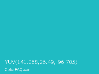 YUV 141.268,26.49,-96.705 Color is a normal cyan color and the nearest color is Java #1fc2c2. Hex code #1fbbc3 and RGB value is rgb(31,187,195). In RGB color space, this color is composed of 12% red, 73% green, 76% blue, In CMYK color space, this color is composed of 84% cyan, 4% magenta, 0% yellow , 24% black , In HSL color space, this color has a hue angle of 183° , 73% saturation and 44% lightness.