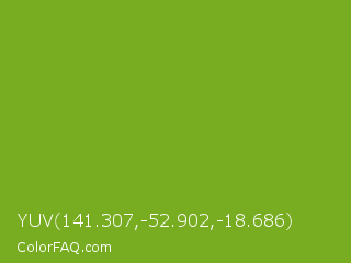 YUV 141.307,-52.902,-18.686 Color is a normal green color and the nearest color is Lima #76bd17. Hex code #78ad22 and RGB value is rgb(120,173,34). In RGB color space, this color is composed of 47% red, 68% green, 13% blue, In CMYK color space, this color is composed of 31% cyan, 0% magenta, 80% yellow , 32% black , In HSL color space, this color has a hue angle of 83° , 67% saturation and 41% lightness.