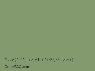YUV 141.52,-15.539,-9.226 Color is a normal green color and the nearest color is Battleship Gray #828f72. Hex code #83996e and RGB value is rgb(131,153,110). In RGB color space, this color is composed of 51% red, 60% green, 43% blue, In CMYK color space, this color is composed of 14% cyan, 0% magenta, 28% yellow , 40% black , In HSL color space, this color has a hue angle of 91° , 17% saturation and 52% lightness.