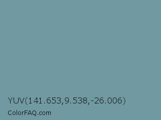 YUV 141.653,9.538,-26.006 Color is a normal cyan color and the nearest color is Gothic #6d92a1. Hex code #7099a1 and RGB value is rgb(112,153,161). In RGB color space, this color is composed of 44% red, 60% green, 63% blue, In CMYK color space, this color is composed of 30% cyan, 5% magenta, 0% yellow , 37% black , In HSL color space, this color has a hue angle of 190° , 21% saturation and 54% lightness.