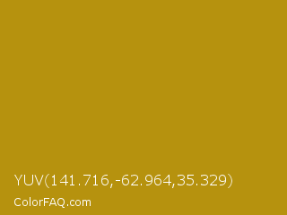 YUV 141.716,-62.964,35.329 Color is a normal yellow color and the nearest color is Dark Goldenrod #b8860b. Hex code #b6920e and RGB value is rgb(182,146,14). In RGB color space, this color is composed of 71% red, 57% green, 5% blue, In CMYK color space, this color is composed of 0% cyan, 20% magenta, 92% yellow , 29% black , In HSL color space, this color has a hue angle of 47° , 86% saturation and 38% lightness.