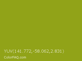 YUV 141.772,-58.062,2.831 Color is a normal yellow color and the nearest color is Citron #9fa91f. Hex code #91a318 and RGB value is rgb(145,163,24). In RGB color space, this color is composed of 57% red, 64% green, 9% blue, In CMYK color space, this color is composed of 11% cyan, 0% magenta, 85% yellow , 36% black , In HSL color space, this color has a hue angle of 68° , 74% saturation and 37% lightness.