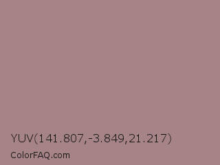 YUV 141.807,-3.849,21.217 Color is a normal red color and the nearest color is Pharlap #a3807b. Hex code #a68386 and RGB value is rgb(166,131,134). In RGB color space, this color is composed of 65% red, 51% green, 53% blue, In CMYK color space, this color is composed of 0% cyan, 21% magenta, 19% yellow , 35% black , In HSL color space, this color has a hue angle of 355° , 16% saturation and 58% lightness.